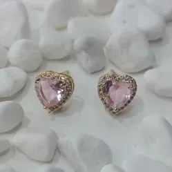 BRINCO CORAÇÃO PEDRA ROSA CRAVEJADO P -
