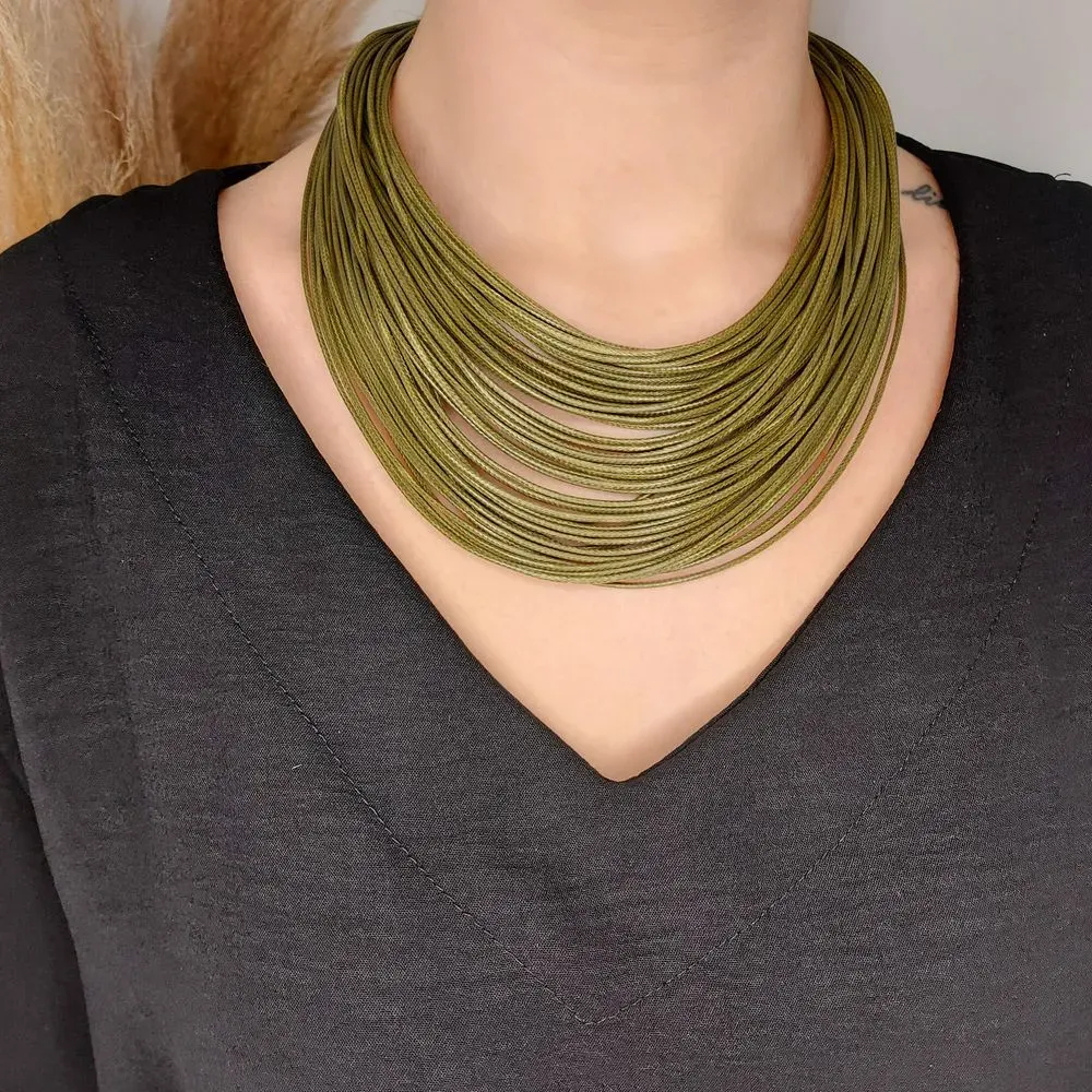 COLAR BIJU CAMADAS FIOS ENCERADO VERDE -