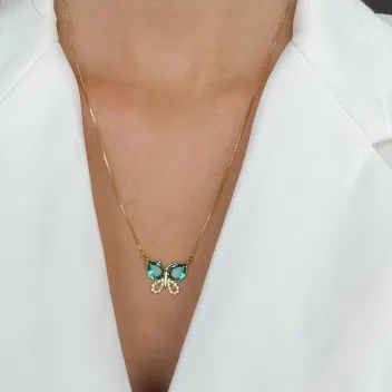 COLAR BORBOLETA PEDRA ESMERALDA Ruby -