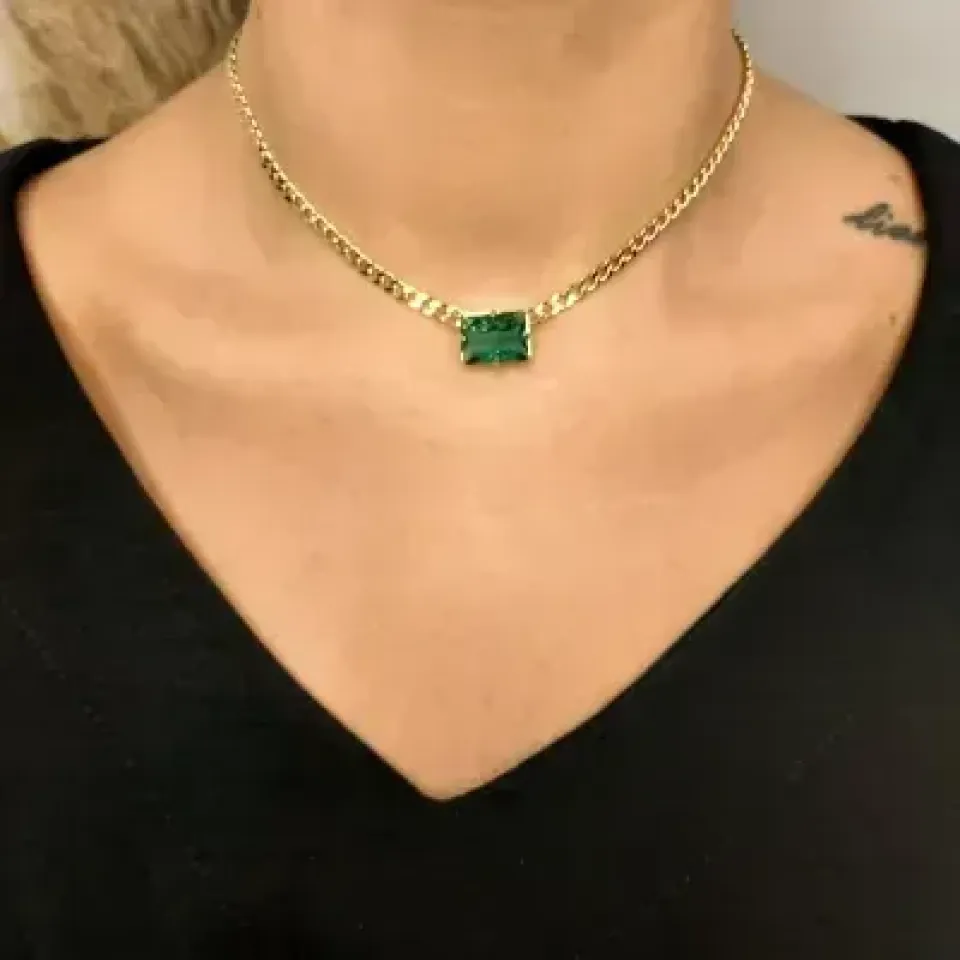 COLAR DE ELOS COM PINGENTE QUADRADO VERDE -